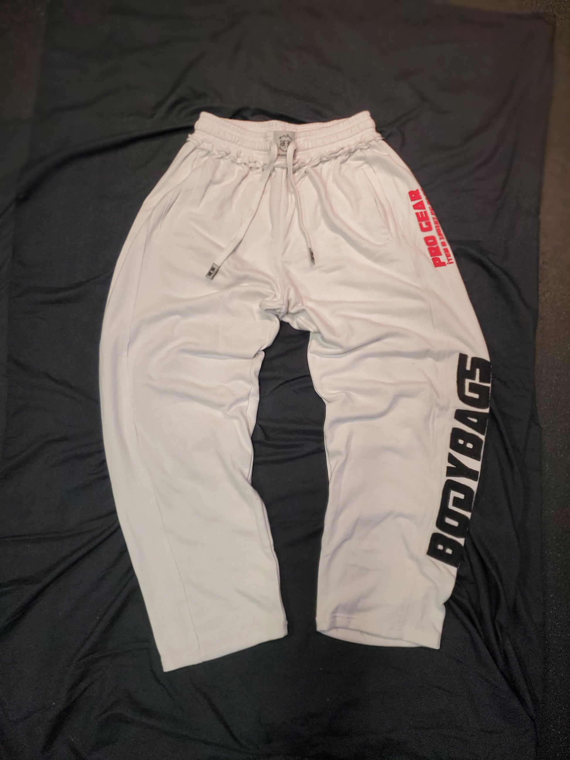 Pro-Gear Series Custom Baggy Sweatpants - WHITE w/BLACK Lettering & RED Print